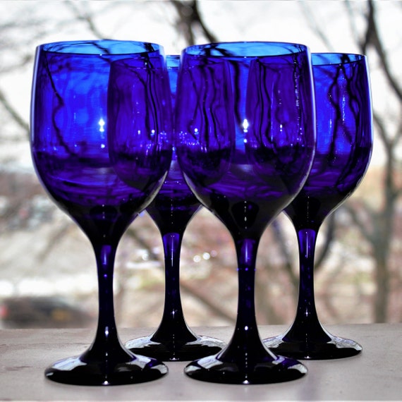Cobalt Blue Wine Glasses 4 Vintage Blue Wine Glass Set Mcm Etsy Canada